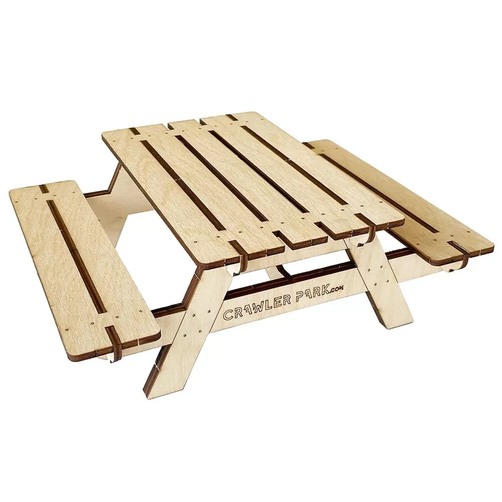 Self-assembly wooden picnic table, 1/10 scale, for decoration your rc crawler course circuit.