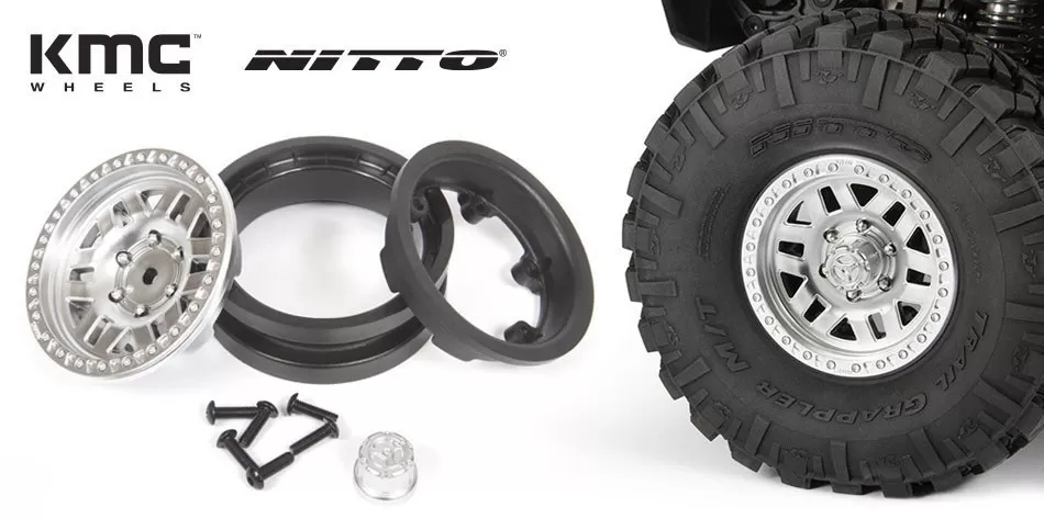 New taller and wider, officially licensed Nitto Trail Grappler tires on 3-piece beadlock wheels add more scale realism and more grip on dirt, rocks, and all other off-road trails.