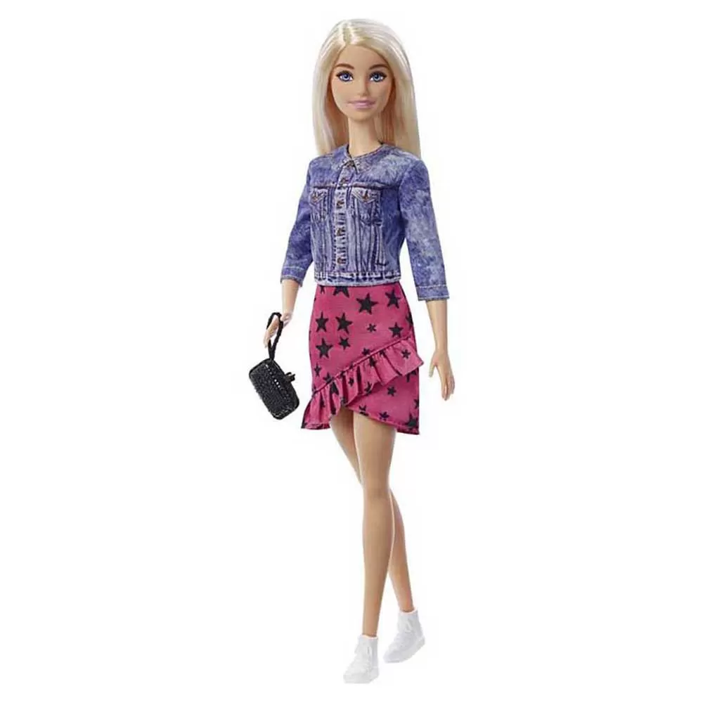 – BarbieĀ® āMalibuā Roberts doll comes dressed in a trendy denim-inspired jacket and ruffled skirt with a starry print.