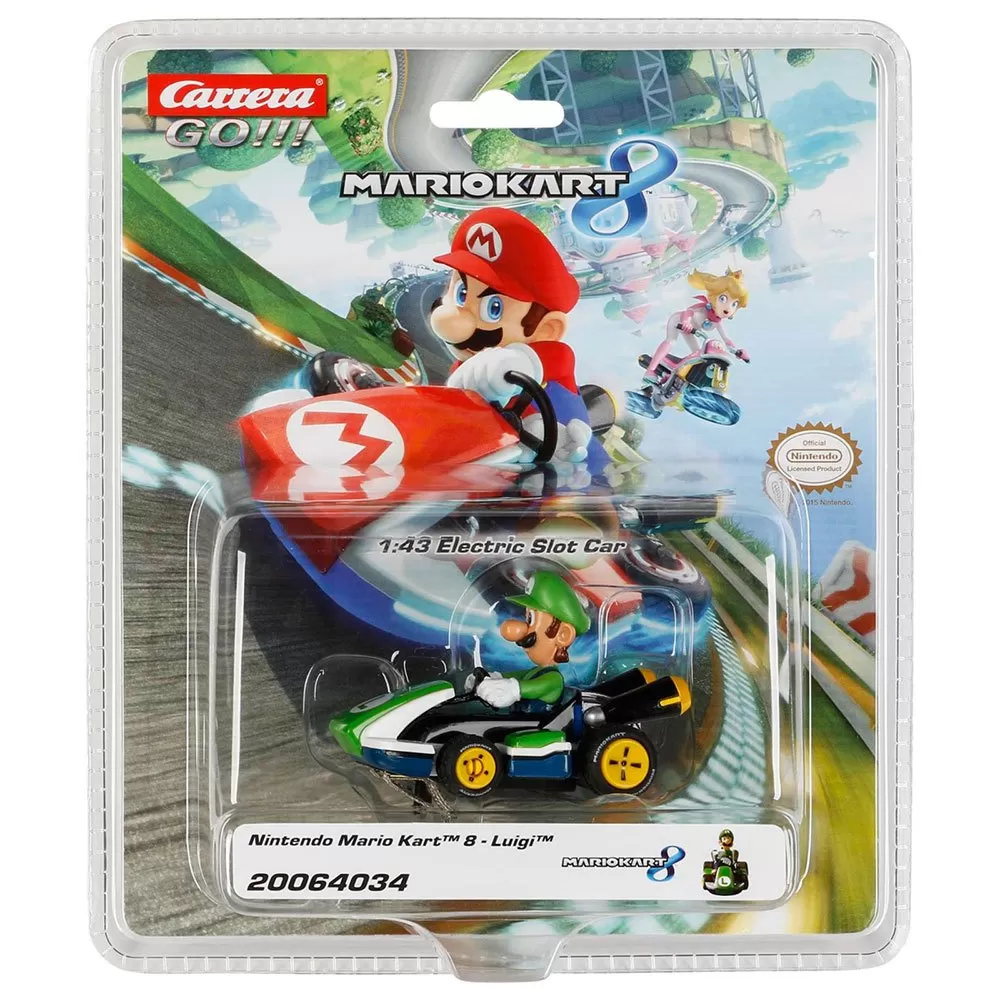 When Luigi puts the pedal to the metal, all hell breaks loose. What could be more fun than battling for victory against your best friends? That´s why Mario, Yoshi and Toad are on this audacious trip. Every one of them wants to win. Luigi accelerates and shoots ahead. Head over tail around the loop – phew! And on he goes! The 1:43 scale Carrera GO!!! Mario Kartâ„¢ 8 Slotcar Luigi guarantees thrills with an authentic appearance and numerous details. This Carrera car is an ideal way of entering the Carrera world of racing for children of 6 years and up!