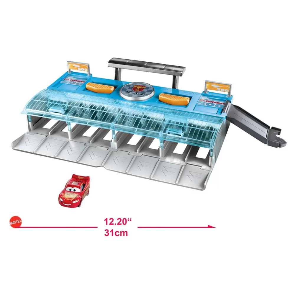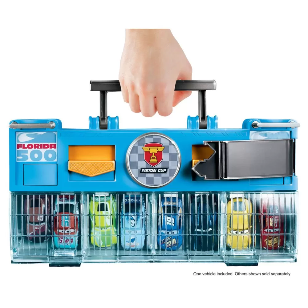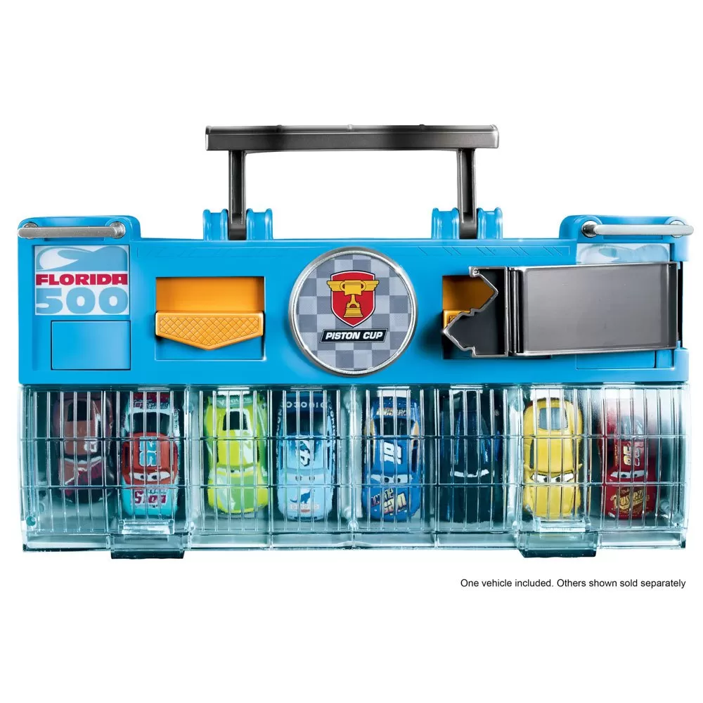 Race against multiple cars at once, just like the pros do! At the end of the racing day, pack everything inside and take your champion wheels on the road to fun! Other vehicles sold separately, subject to availability.