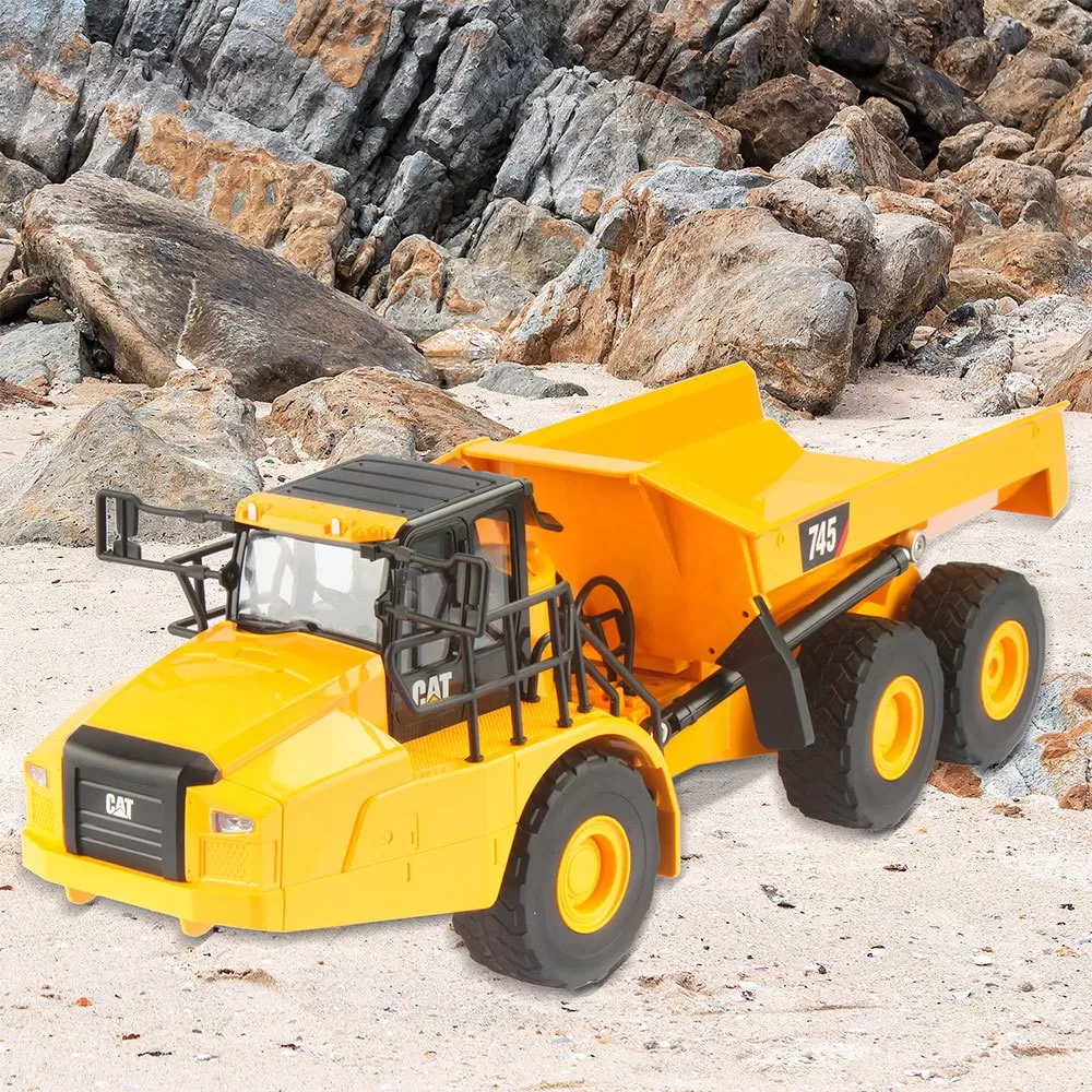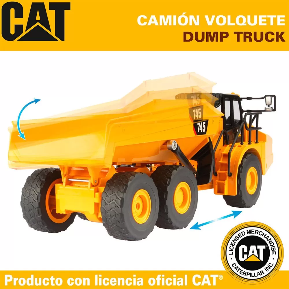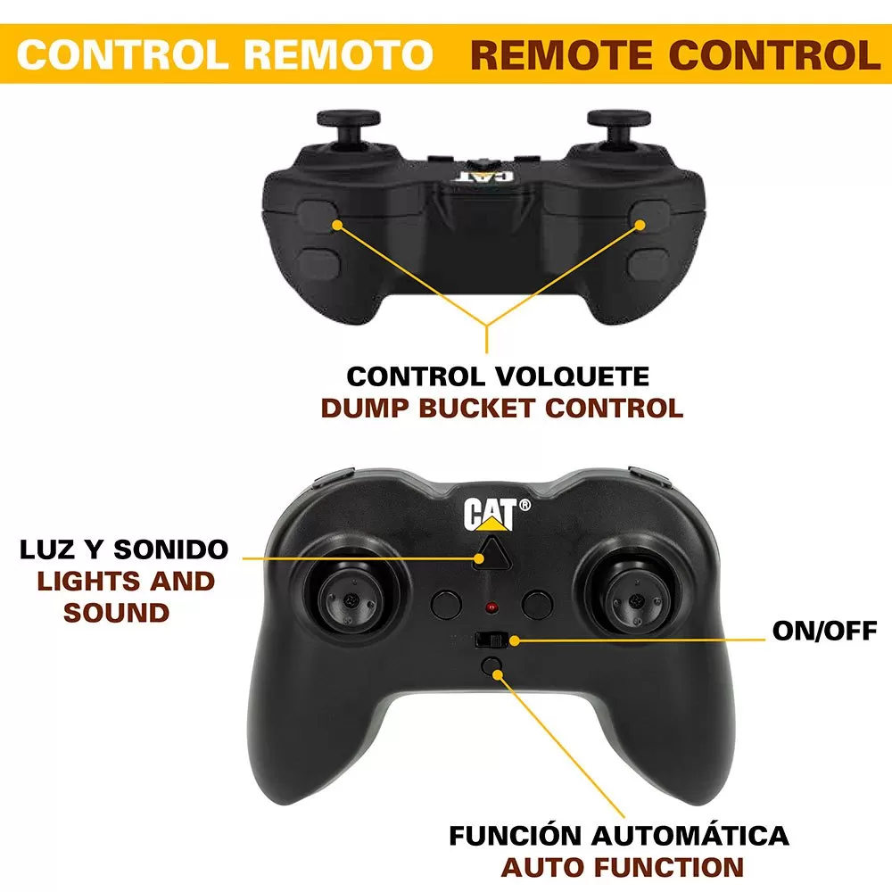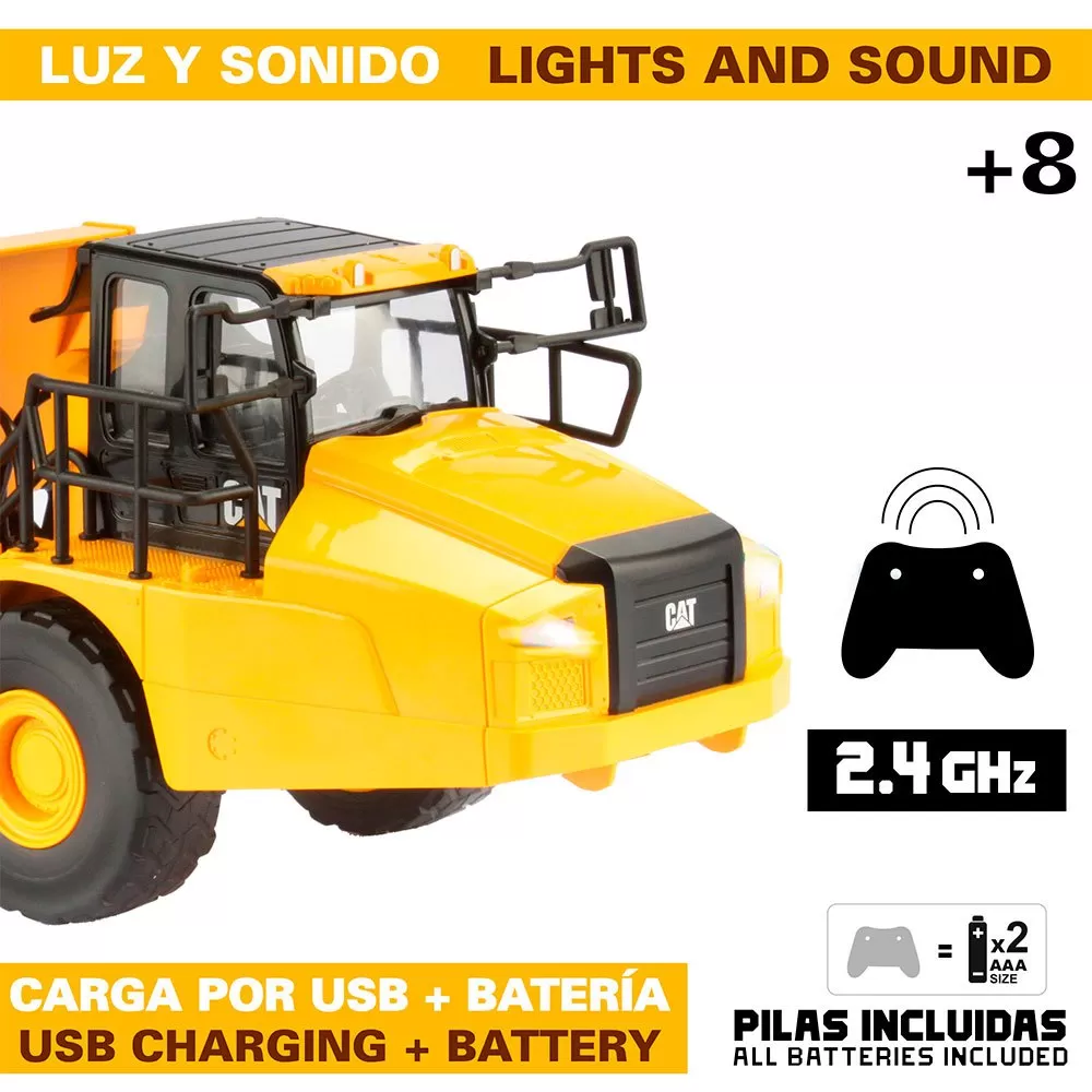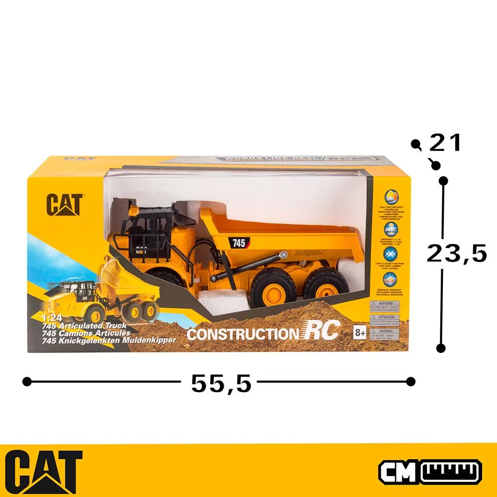 Play and enjoy with the CATERPILLAR construction vehicles! With this 1:24 scale articulated dump truck you can load the heaviest items, it works with a radio control system with 2.4 GH frequency and has a range of 35 meters.