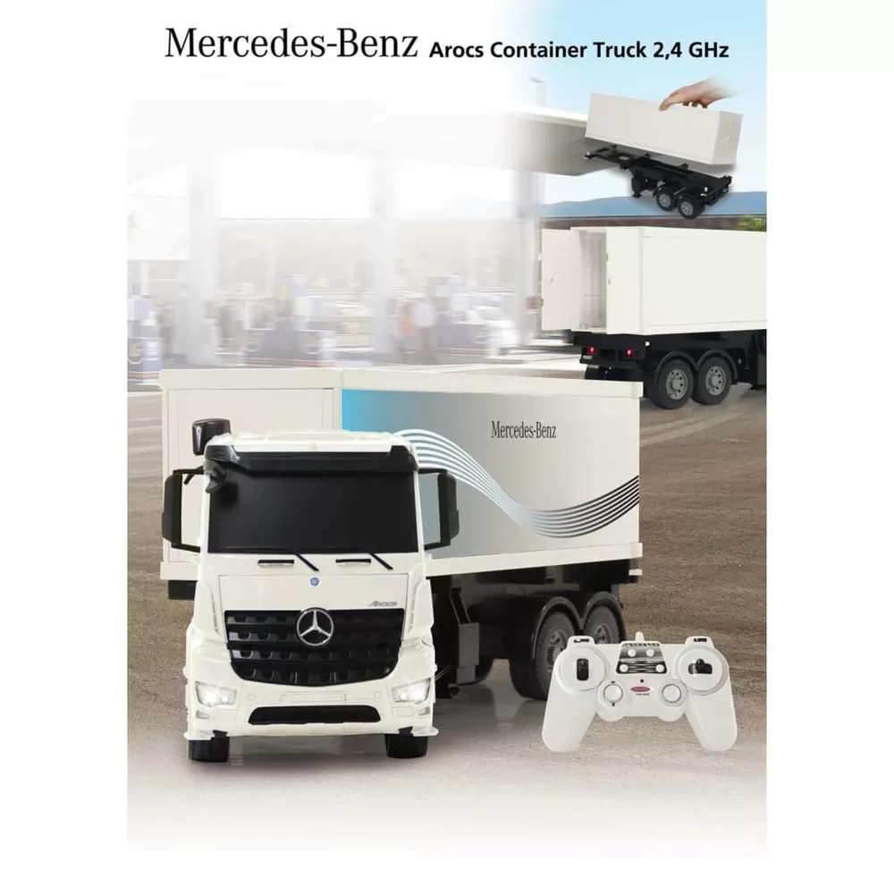 Control your striking Container Truck Mercedes-Benz Arocs from JAMARA! Meet the fantastic container truck on a scale of 1:20!