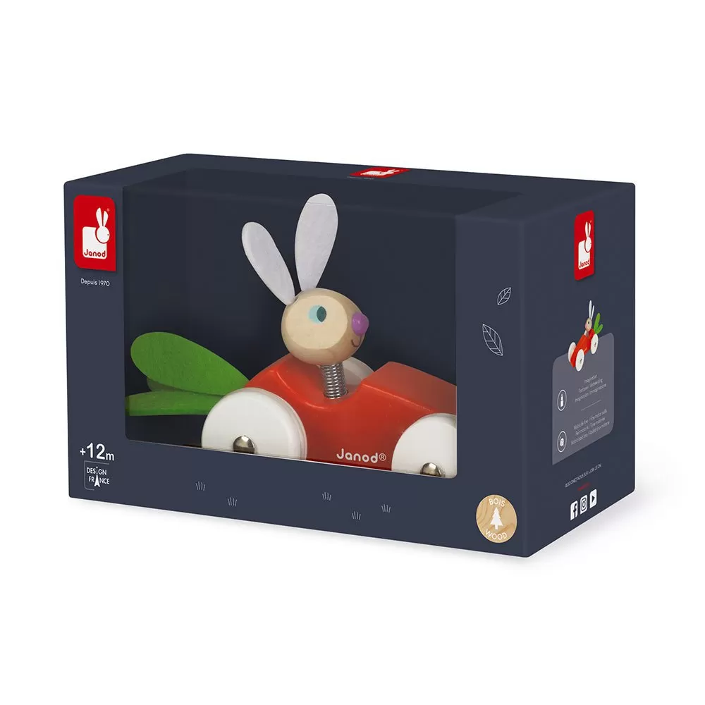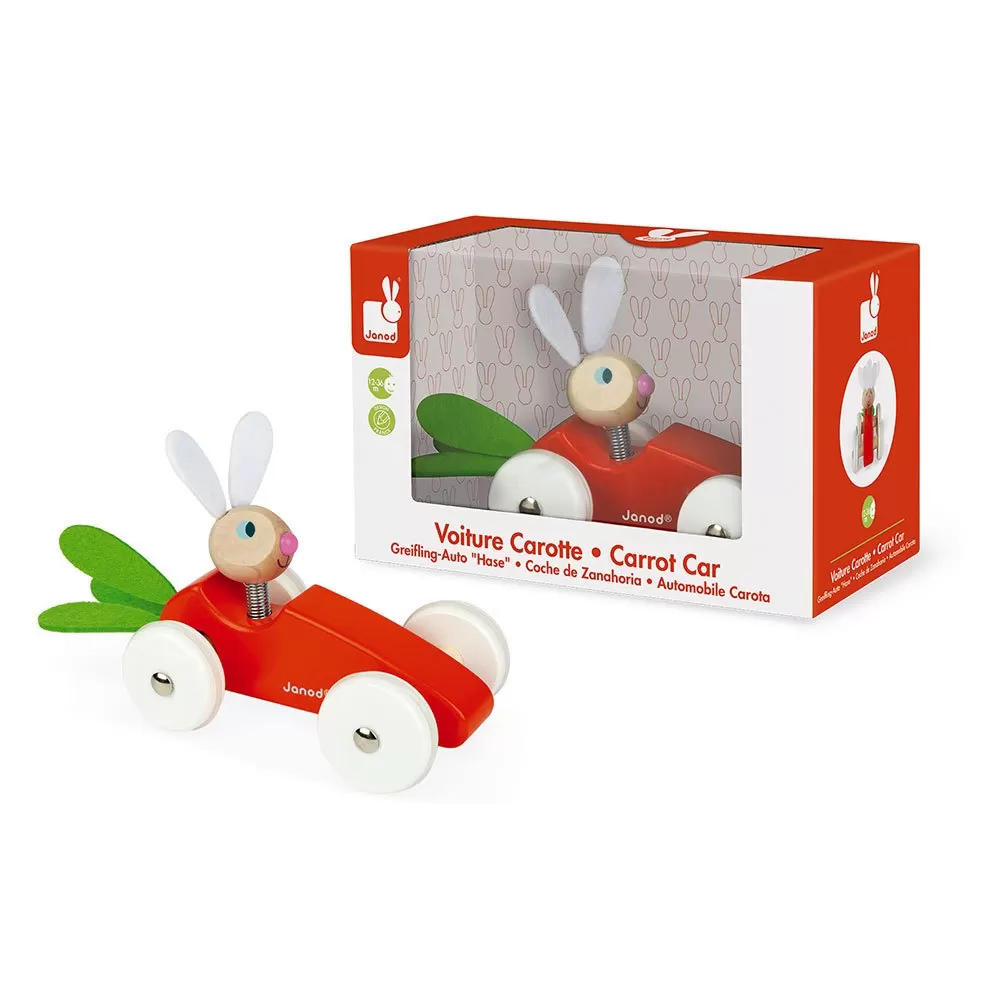 The directional wheels go in all directions, while the rabbit´s ears and carrot tops are made of felt, for a super soft touch! Wood: