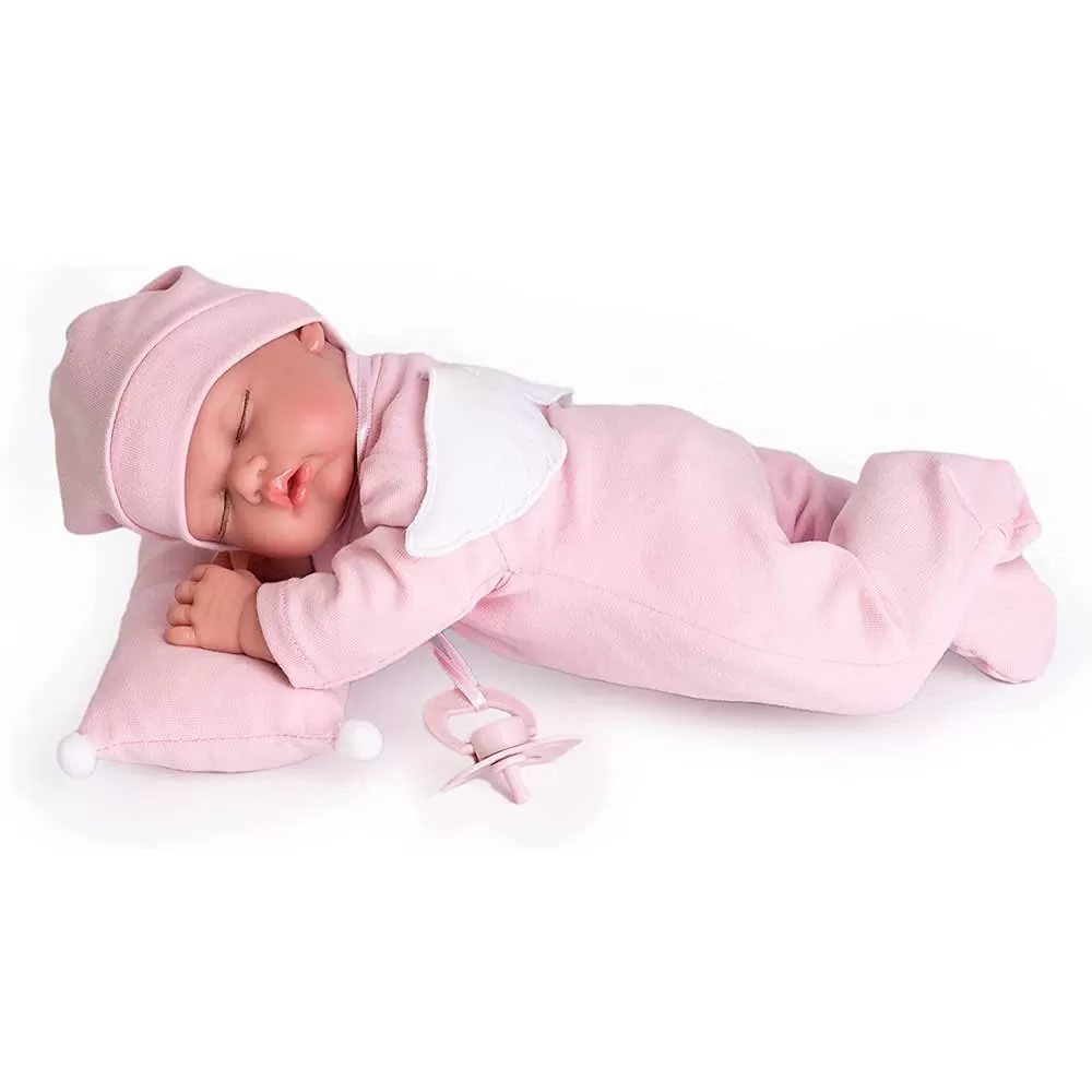 Shh that Luni Posturitas with angel wings is resting! With his sweet face, he rests on his cushion, with his funny pajamas with wings. This is a doll that you can take anywhere, which does not lack details! It is designed with a flexible internal structure and a soft body, Antonio Juan Doll Posturitas is able to adapt and follow the little ones in all their adventures. Just like a real baby, she adopts any position so there are no limits to her imagination when it comes to playing with her doll. It measures 29 cm and weighs 480 gr.