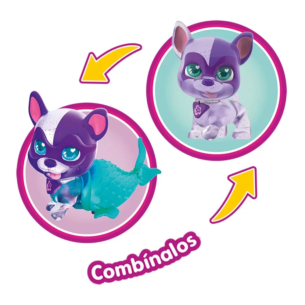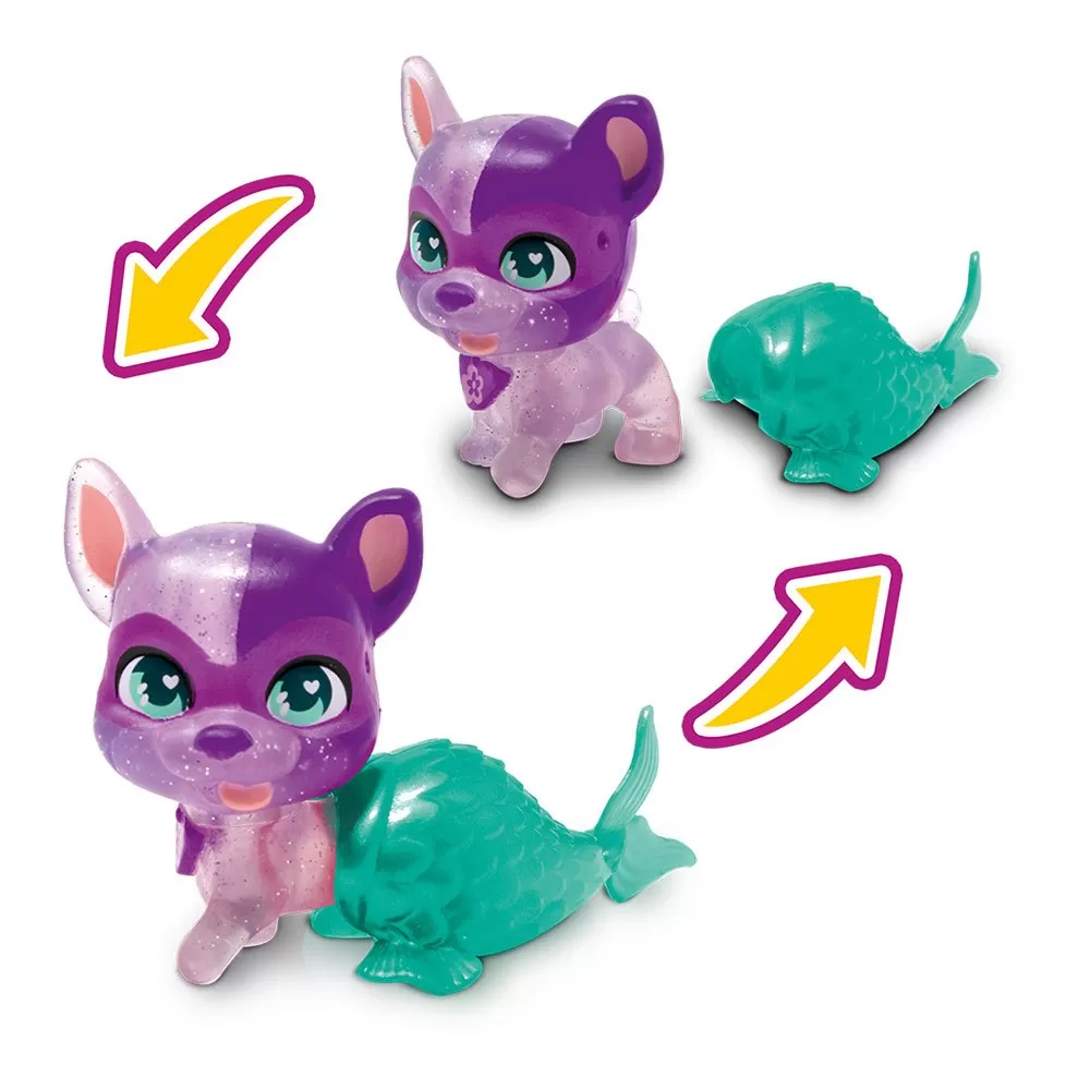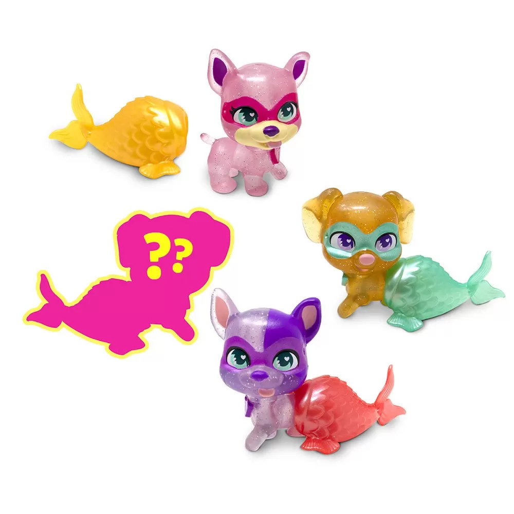 The mini siren dogs super cute are 4 exclusive puppies with interchangeable siren tails, one of them is surprise.