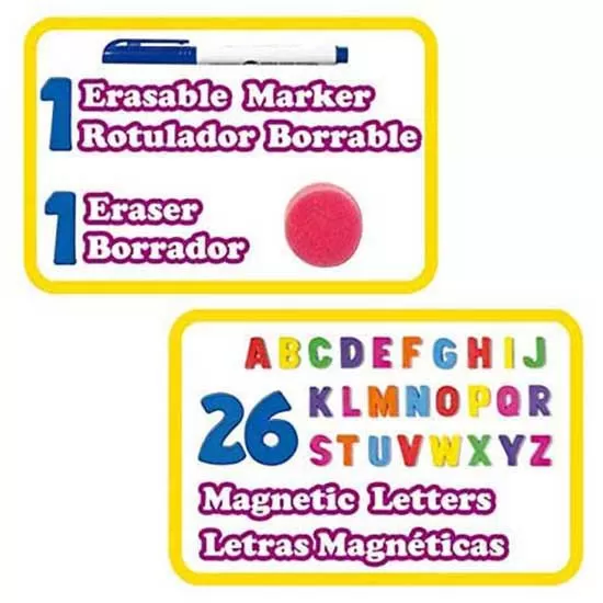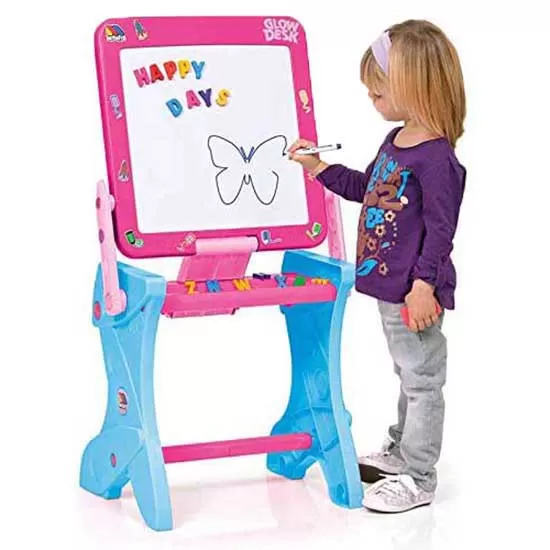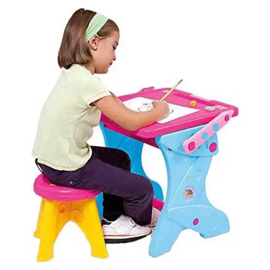 By lifting the board it is a blackboard and a magnetic board with which to play with the letters, when lowering it a very stability desk.