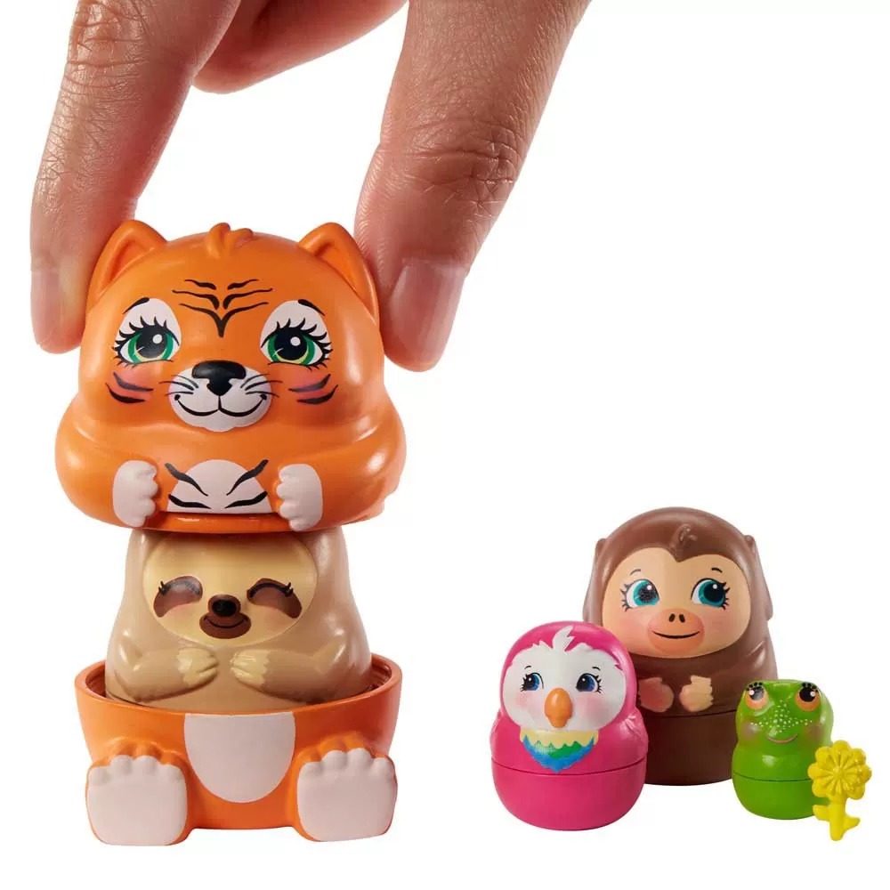 This Enchantimals™ treehouse is packed with sweet surprises! Open the door to reveal Peeki Parrot™ inside, who also comes with an animal bestie! For more surprises, this bestie opens up to reveal another bestie, and another, and another, and another! There are 5 Enchantimals™ figures in total.