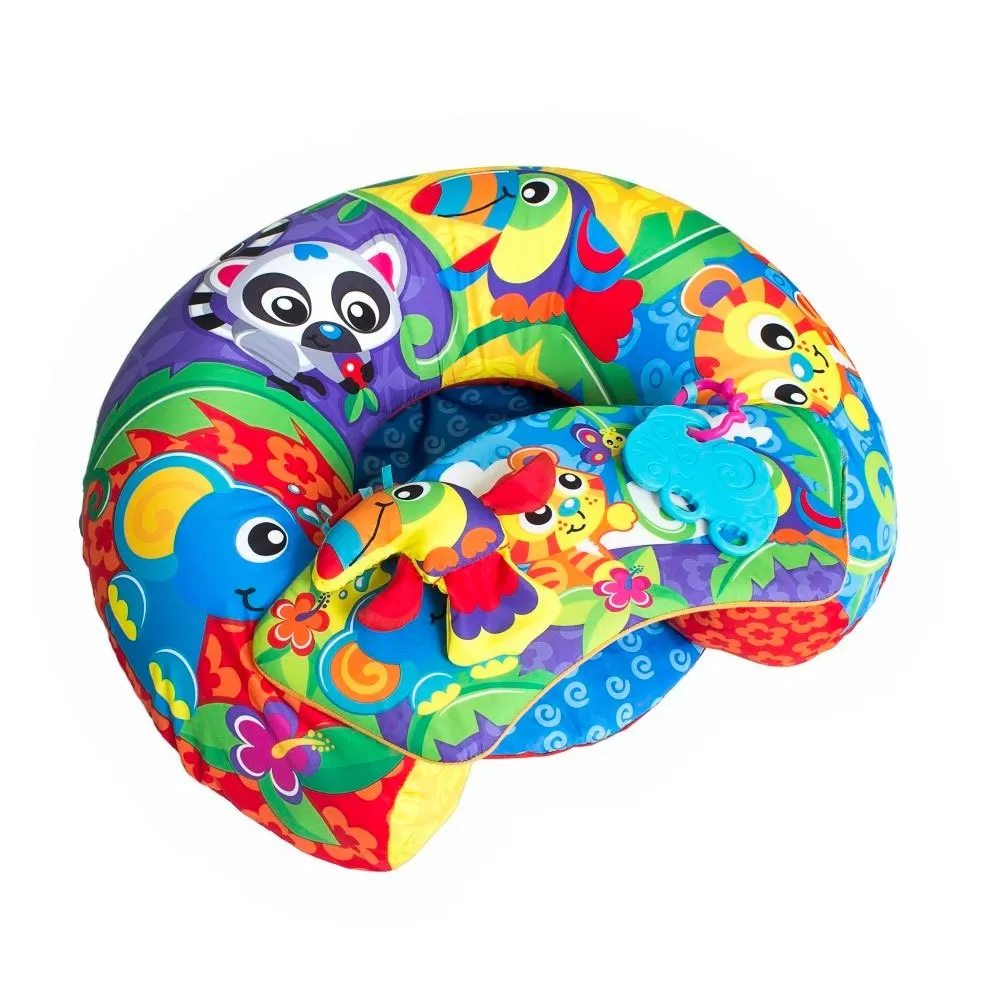 The unique design of the Sit ‘n’ Play assists babies learning to sit up independently, by offering a soft inflatable ring for them to sit in. A detachable tray can be added to the front of the ring for baby to play with the detachable hanging toys. Each toy offers a unique feature of a squeaker or rattle to encourage auditory stimulation.