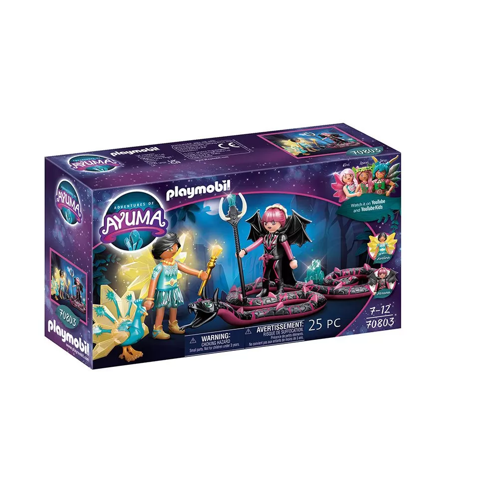 The enchanting Crystal Fairies live together with their faithful soul animals in peace and quiet in the idyllic fairy forest. Soul animals and fairies are united by a very special bond. But the sinister Bat Fairies try to find the mystical energy source and steal its crystal. This puts the fairy world in great danger! One of the sinister Bat Fairies has just learned where the magical energy source is located. Using her bat wings, she takes to the skies to tell her friends about her discovery. Can the brave Crystal Fairy and her magical peacock stop her in time? Enchanting fairy adventures await imaginative children. The playset includes a Crystal Fairy with crystal peacock soul animal, a Bat Fairy with snake soul animal, fairy wand and many other extras.