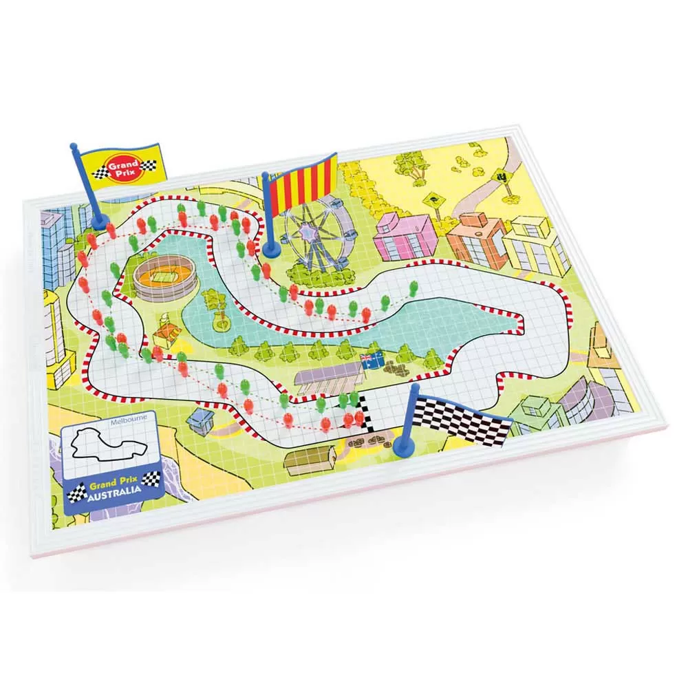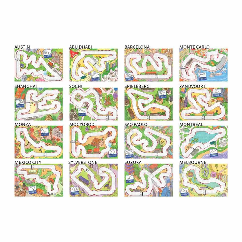 It contains 16 different printed circuits and the necessary pins to mark the position of the respective cars along the entire route.