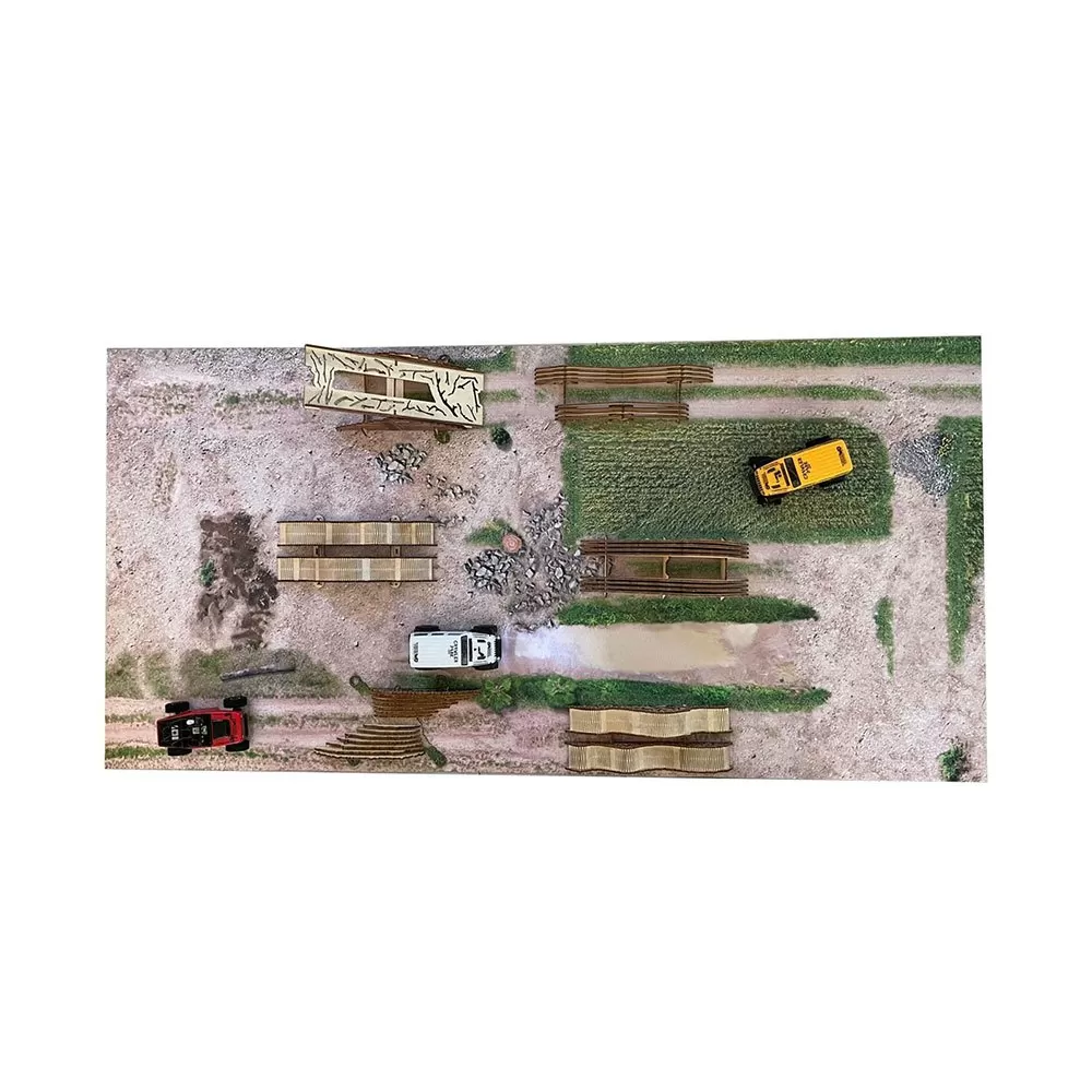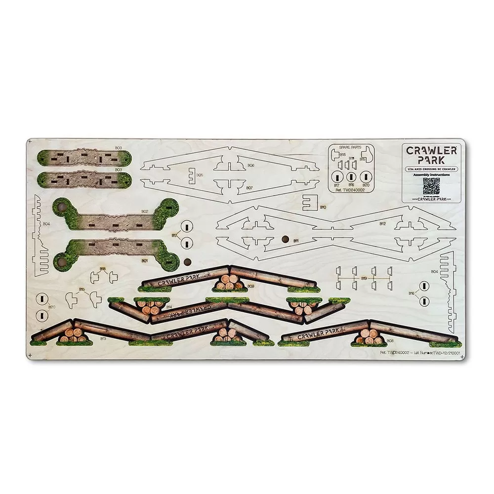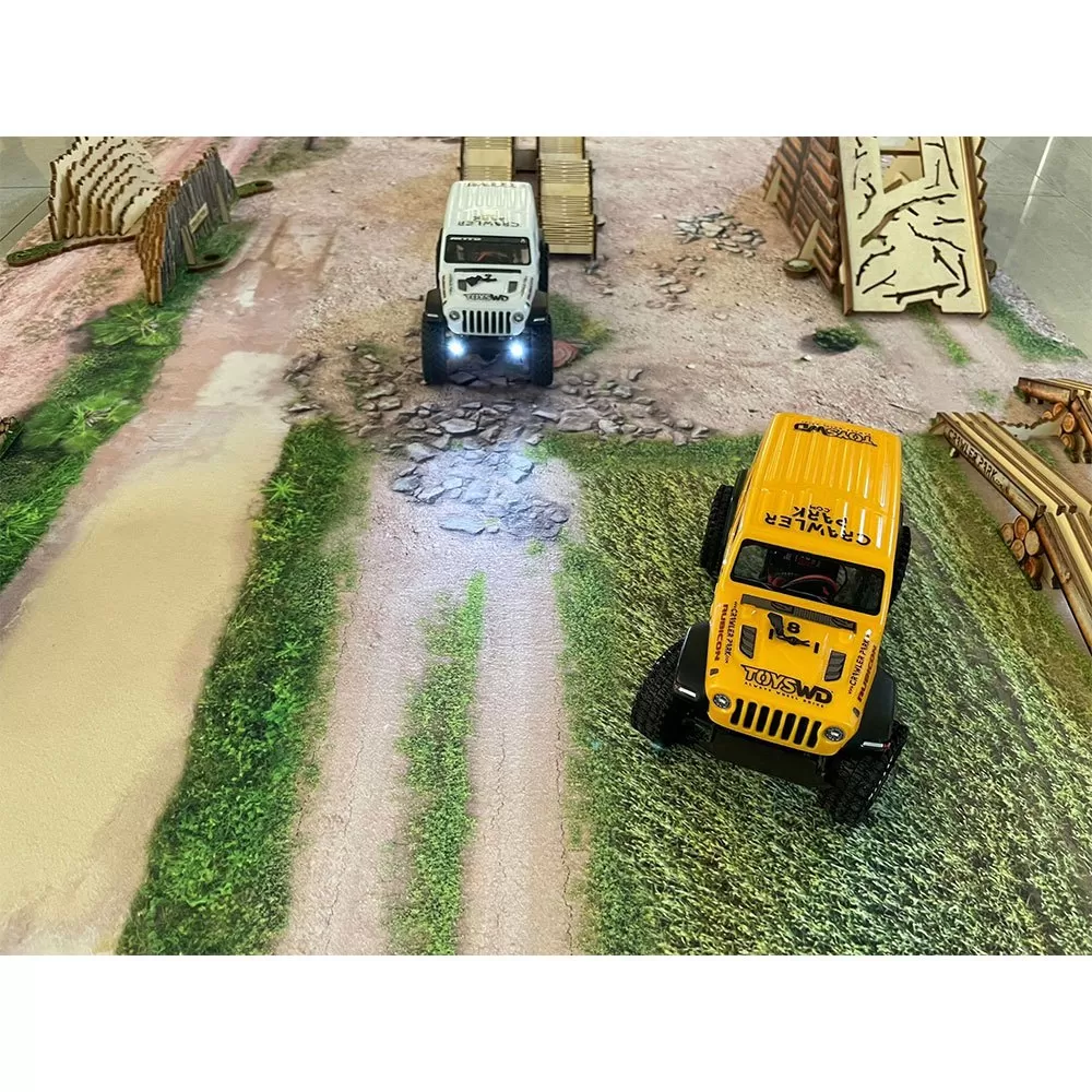 – We present the first Crawler Park kit with a carpet base that gives you off-road scale realism that you do not have at home, you will drive along the paths with a stone, mud, sand and grass effect while you climb the 4 spectacular obstacles of different levels of difficulty with a surprising realism 1/18 scale.