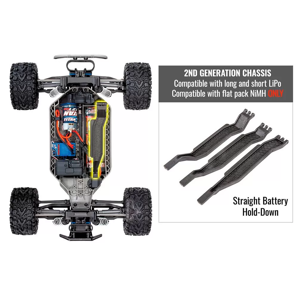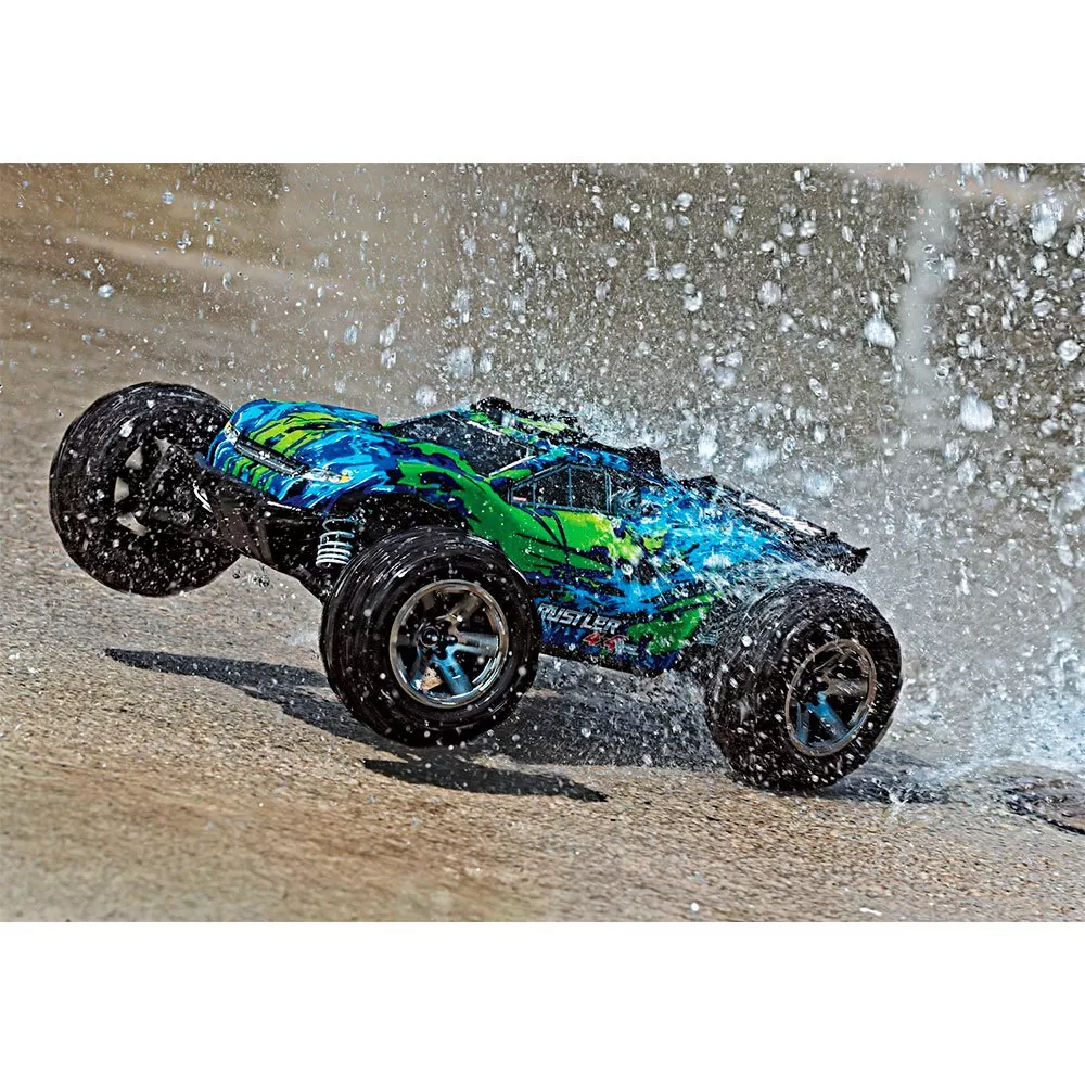 drive performance, increased durability, and even more fun! Bury the throttle and the Rustler 4X4 VXL launches its front wheels skyward as it shreds the ground underneath.