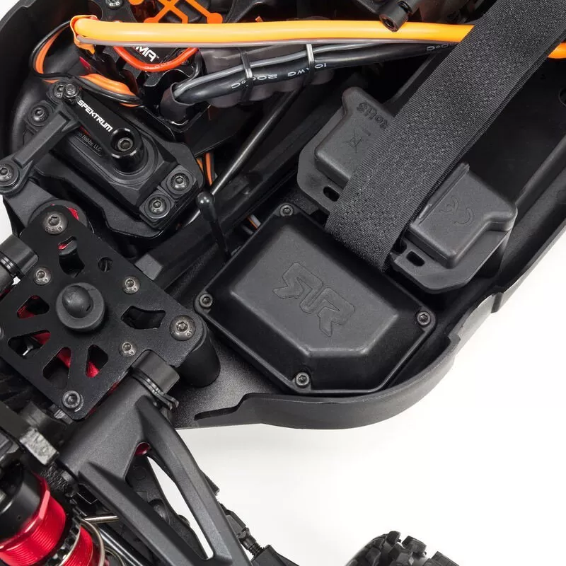 Front and rear composite chassis braces and composite chassis side pods add more toughness.