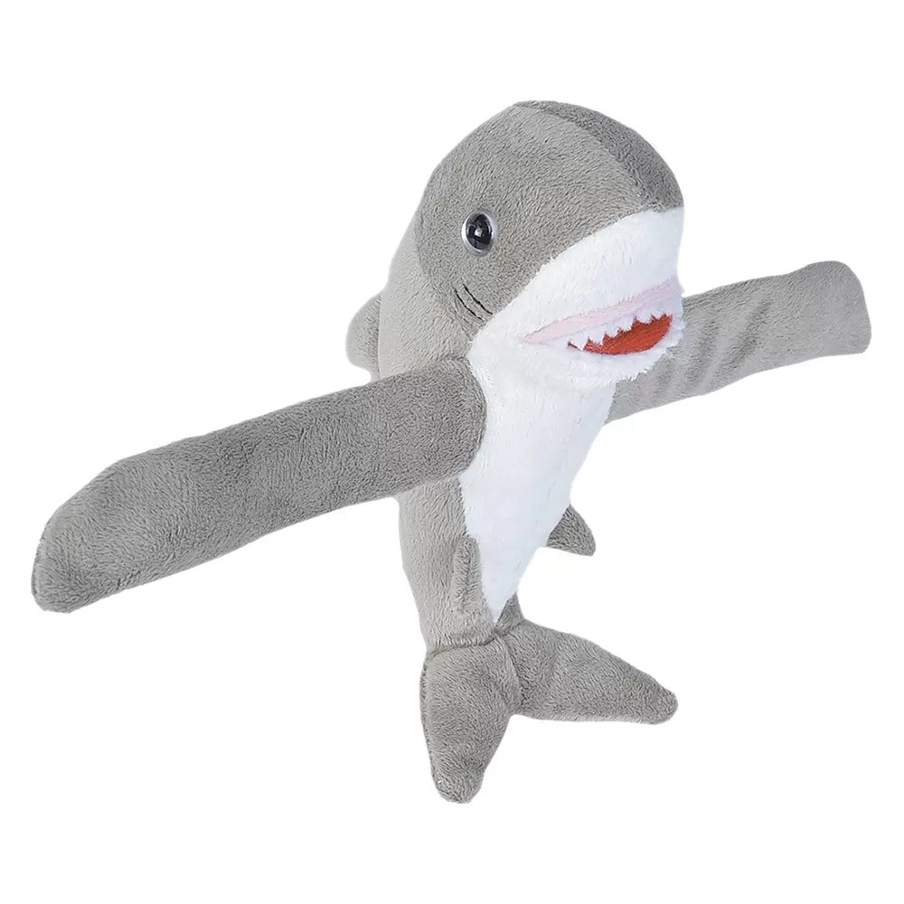This friendly great white shark stuffed animal is perfectly lovable. Spread the fins wide open. Give the chest a squeeze, then SNAP the fins instantly wrap around and give you a hug. Hugs onto your wrist, backpack, stroller and so much more.
